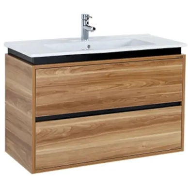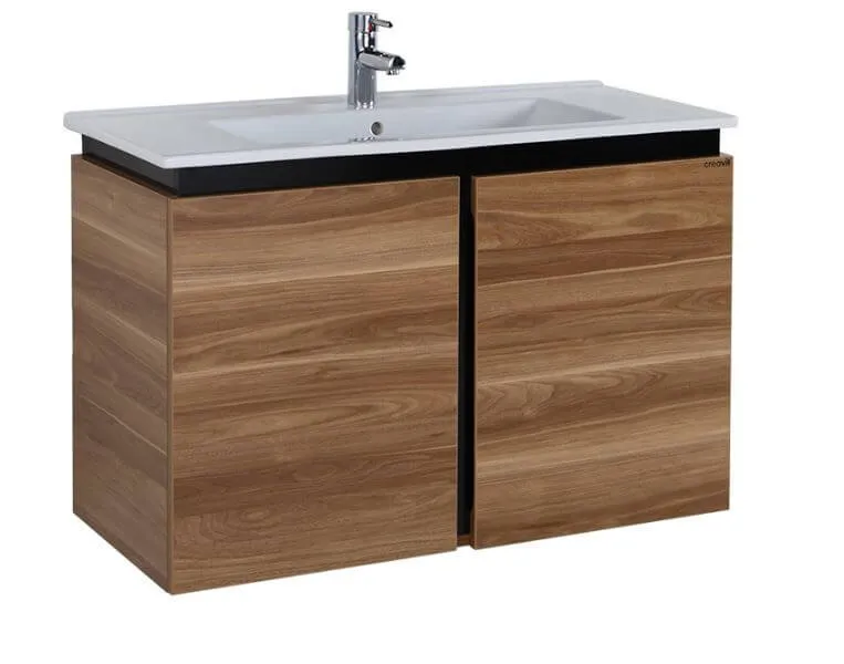 Тумба для ванной Creavit Verti VE0100.42.VV + SU100-00CB00E-0000 100 см, подвесная, с раковиной, орех