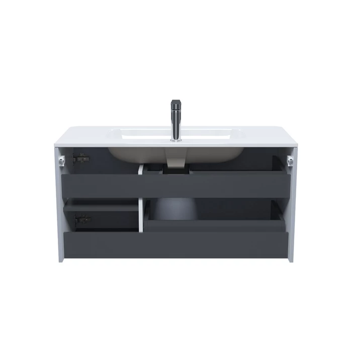 В комплекте умывальник (арт. 0101000i28) из качественного фарфора. Он отличается высокой прочностью и прост в уходе: не задерживает загрязнения и неприятные запахи, надолго сохраняя первозданную белизну. Два выдвижных ящика закрываются плавно и бесшумно благодаря высококачественным скрытым направляющим с доводчиками немецкого производства. Надежные крепления рассчитаны на большой вес и позволяют равномерно распределять нагрузку. Фурнитура рассчитана на 30 000 открываний, что составляет более 10 лет исправной работы.