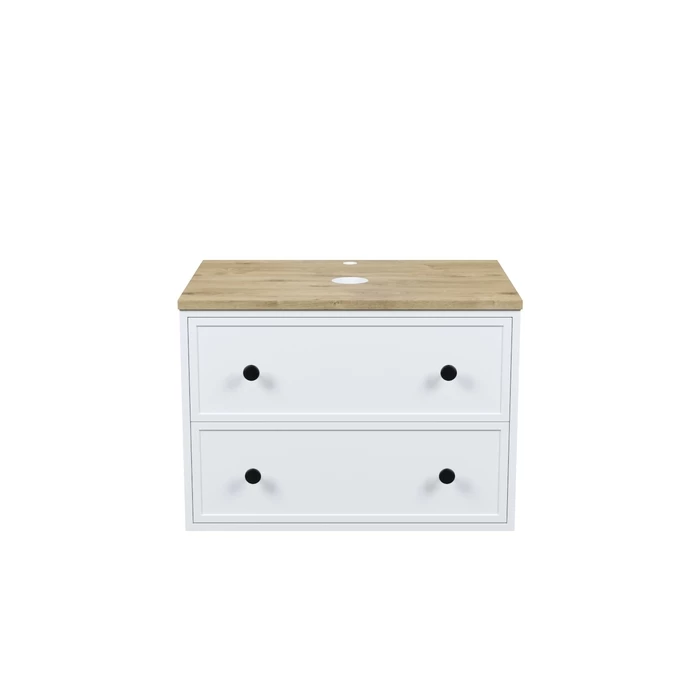 Компактная подвесная тумба Torr классического молочно-белого цвета со столешницей из МДФ в оттенке дуба верона. Сочетает в себе узнаваемый стиль и практичность популярного скандинавского дизайна. Ее четкие формы, теплый цвет дерева, фасады с декоративной филенкой, круглые ручки смотрятся гармонично и впишутся в любой современный интерьер. Подойдет любой накладной умывальник, покупается отдельно.