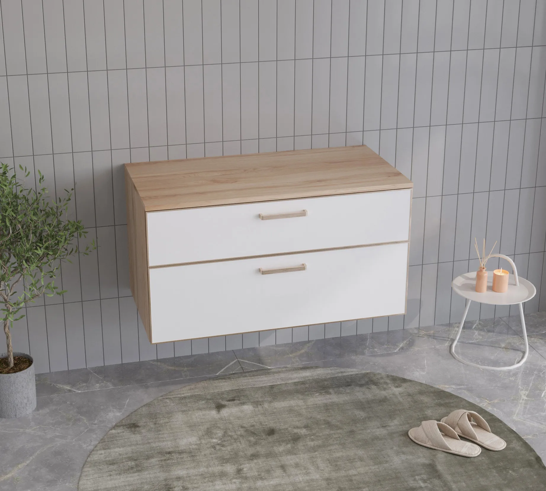 Тумба для ванной ORKA Salerno 3008782 100 см белый матовый/светлое дерево, ручки золото