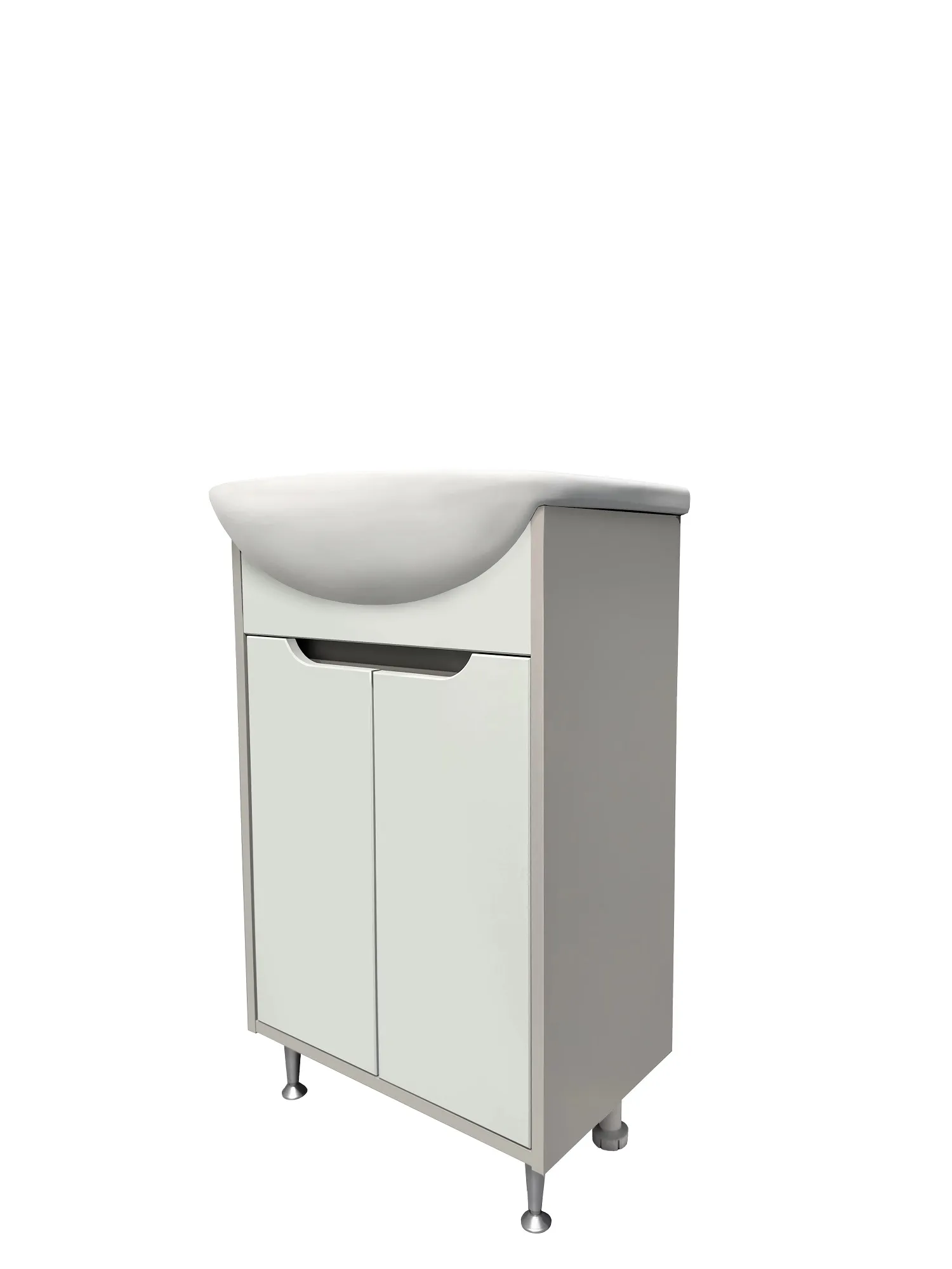 Тумба под раковину ЭкоНова (напольная) - это стильное сочетание корпуса с фасадами. Тумба в ванную с двумя распашными дверцами на петлях с доводчиками (верхняя петля с доводчиком, нижняя без доводчика) и одной встроенной полкой. В комплект также входят 2 хромированные и 2 пластиковые ножки. Мебель для ванной Руно - красота и практичность в мелочах!