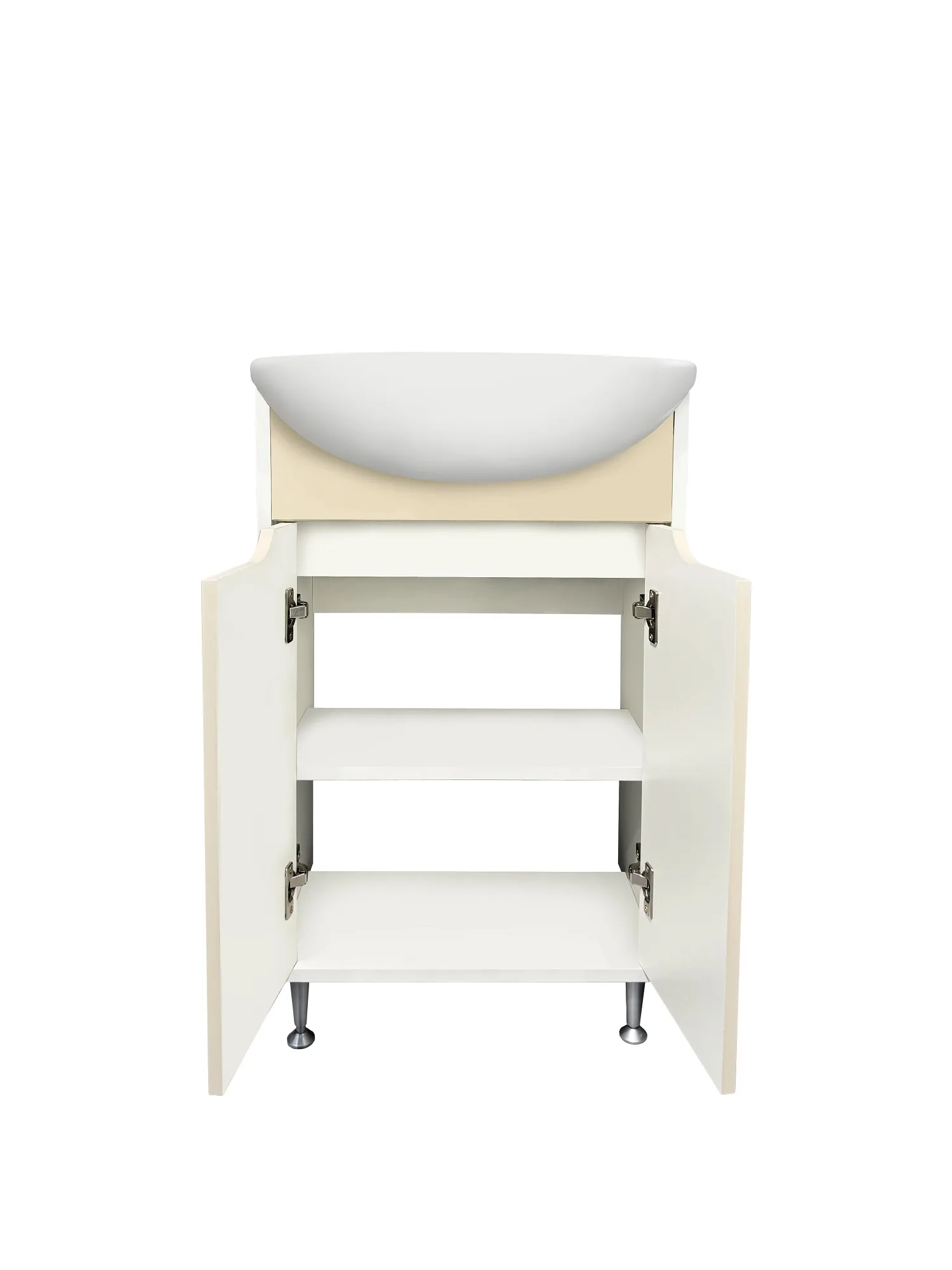 Тумба под раковину ЭкоНова (напольная) - это стильное сочетание корпуса с фасадами. Тумба в ванную с двумя распашными дверцами на петлях с доводчиками (верхняя петля с доводчиком, нижняя без доводчика) и одной встроенной полкой. В комплект также входят 2 хромированные и 2 пластиковые ножки. Мебель для ванной Руно - красота и практичность в мелочах!