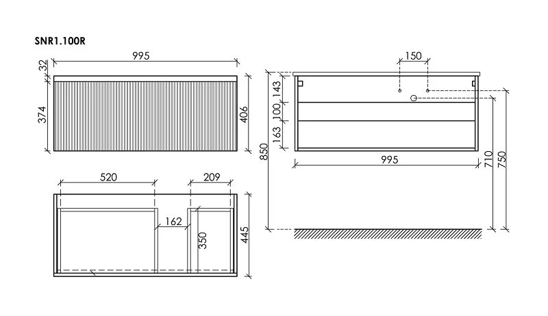 Тумба для ванной Sancos Snob R 1.0 SNR1.0100RSM правая, 100см, doha soft