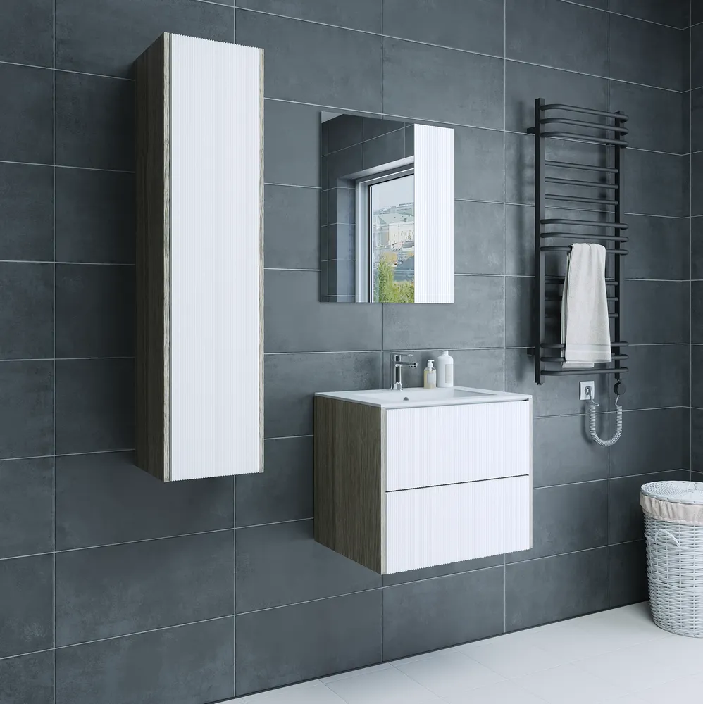 Подвесная тумба, выполнена в современном стиле. Материал корпуса выполнен из ЛДСП в цвете дуб шерман, материал фасада ЛМДФ с вертикальной фрезой, покрытие фасада эмаль белого цвета. Конструкция тумбы состоит из 2-ух выдвижных ящиков с направляющими скрытого монтажа системы Push to Open. Главным преимуществом данной модели считается - вместительные ящики, идеально подходят для хранения косметики, аксессуаров и мелочей. Простые линии и минималистический дизайн подчеркивают лёгкость, создавая ощущение свободного пространства. Гарантия 2 года, подробная инструкция. Поставляется в собранном виде. В комплекте с данной тумбой идет раковина Piano 65 производства KERAMA MARAZZI.