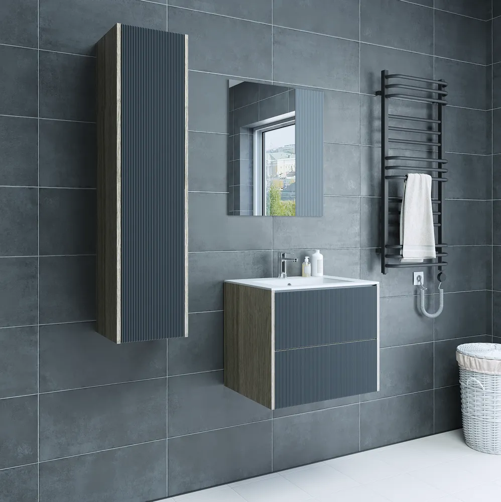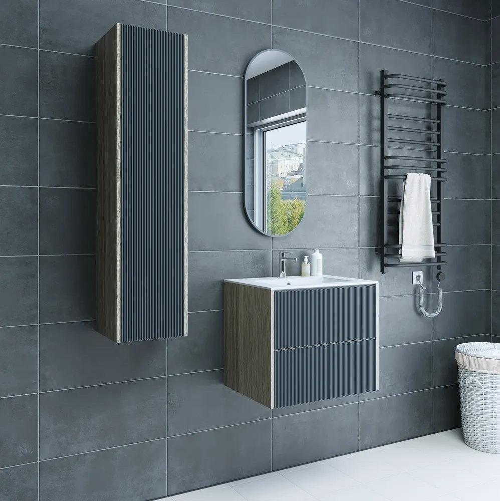Подвесная тумба, выполнена в современном стиле. Материал корпуса выполнен из ЛДСП в цвете дуб шерман, материал фасада ЛМДФ с вертикальной фрезой, покрытие фасада эмаль в цвете графит. Конструкция тумбы состоит из 2-ух выдвижных ящиков с направляющими скрытого монтажа системы Push to Open. Главным преимуществом данной модели считается - вместительные ящики, идеально подходят для хранения косметики, аксессуаров и мелочей. Простые линии и минималистический дизайн подчеркивают лёгкость, создавая ощущение свободного пространства. Гарантия 2 года, подробная инструкция. Поставляется в собранном виде. В комплекте с данной тумбой идет раковина Piano 65 производства KERAMA MARAZZI.