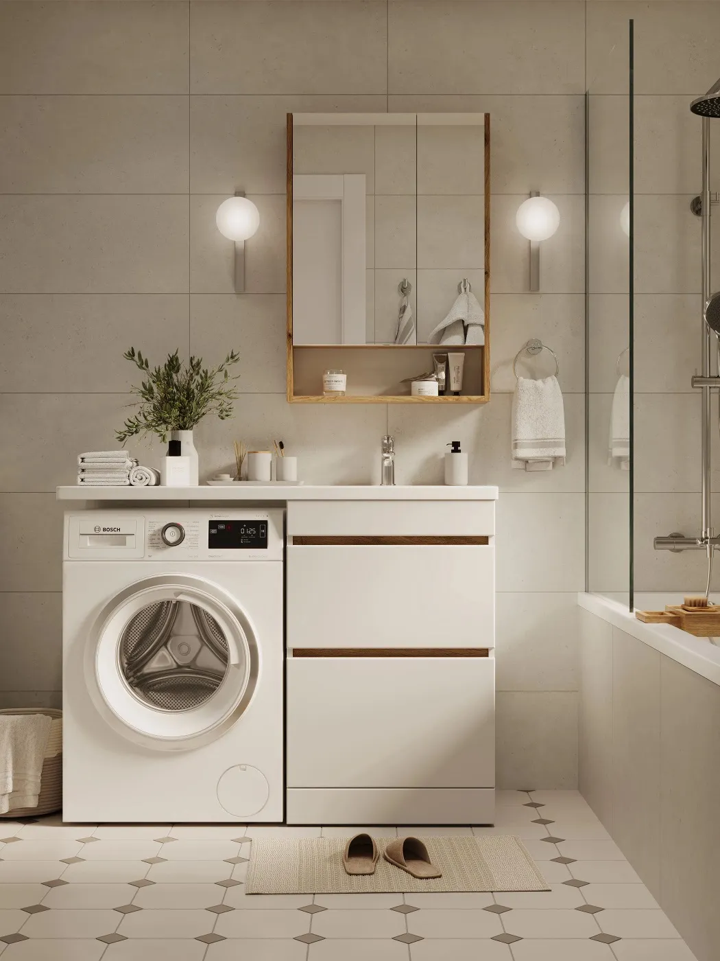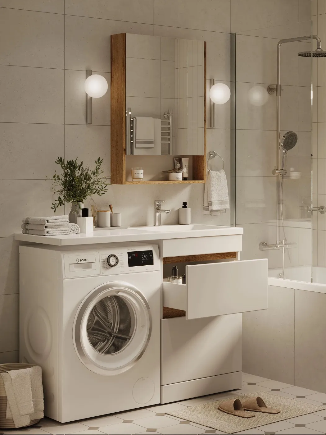 Тумба для ванной VIANT Мальта VMAL120BELLA-T2Y под столешницу для стиральной машины, белая/Дуб вотан
