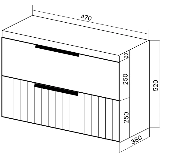 Фасад нижнего ящика декорирован вертикальной фрезеровкой.
