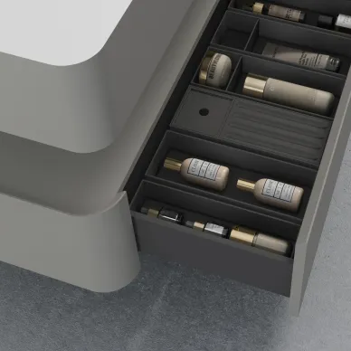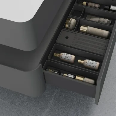 - Передняя часть выдвижного ящика скошена под углом 45°;