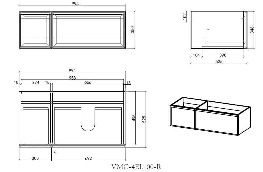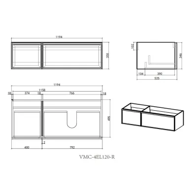 - Дополнительно можно приобрести: раковину VCB-4EL100MW-R, зеркало VLM-4F100GM-2 и шкаф пенал VSC-4EL150MG;