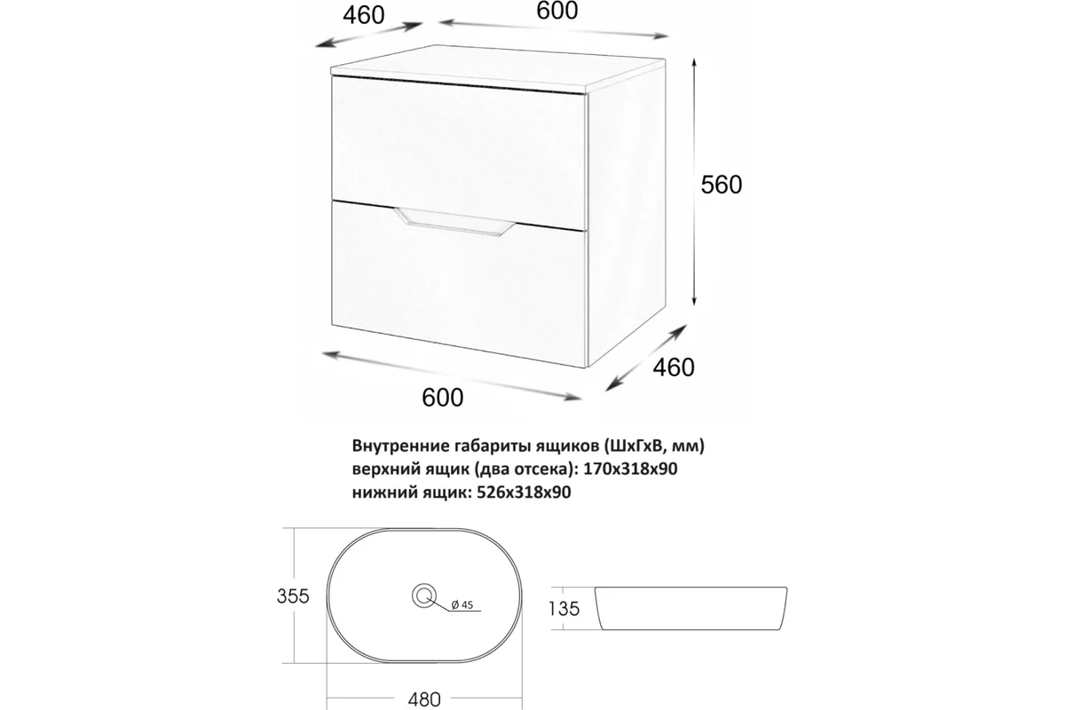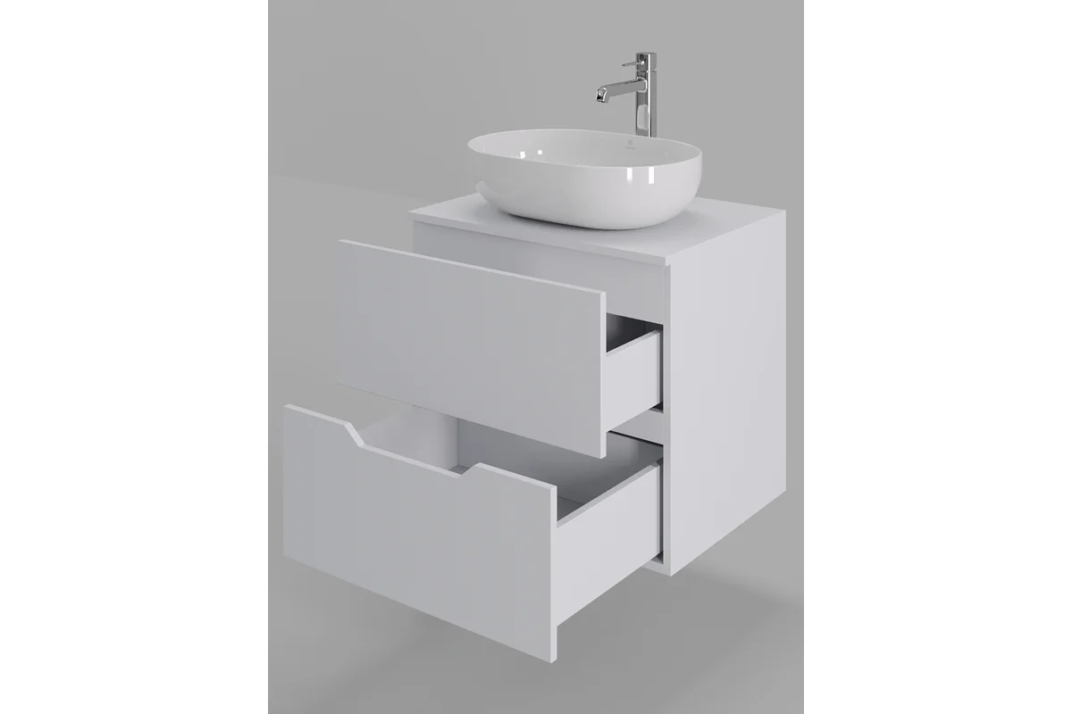 Тумба подвесная с накладной раковиной Orange Line отличается современным дизайном. Изготовлена из МДФ высокой плотности. Мебель покрыта пленкой ПВХ с технологией Soft Touch — ламинация класса премиум, с повышенными тактильными свойствами. Пленка обеспечивает дополнительную защиту мебели от влаги и перепадов температуры. На ящики установлены комплекты скрытых направляющих Hettich, обеспечивающие полное выдвижение и имеющие встроенную систему плавного и бесшумного закрывания. Исполнение - матовое. Материал раковины - фарфор. Отверстия в столешнице под раковину и смеситель монтируются самостоятельно.