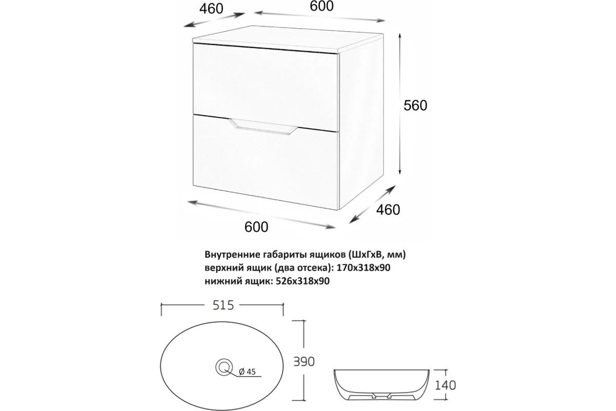 | Комплектация: | тумба под раковину , столешница , раковина |