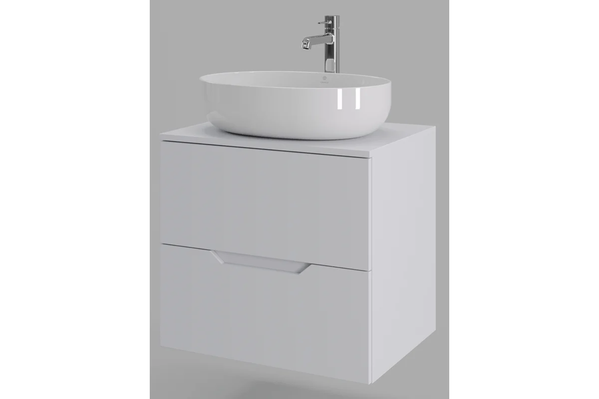 Тумба подвесная с накладной раковиной Orange Line отличается современным дизайном. Изготовлена из МДФ высокой плотности. Мебель покрыта пленкой ПВХ с технологией Soft Touch — ламинация класса премиум, с повышенными тактильными свойствами. Пленка обеспечивает дополнительную защиту мебели от влаги и перепадов температуры. На ящики установлены комплекты скрытых направляющих Hettich, обеспечивающие полное выдвижение и имеющие встроенную систему плавного и бесшумного закрывания. Исполнение - матовое. Материал раковины - фарфор. Отверстия в столешнице под раковину и смеситель монтируются самостоятельно.