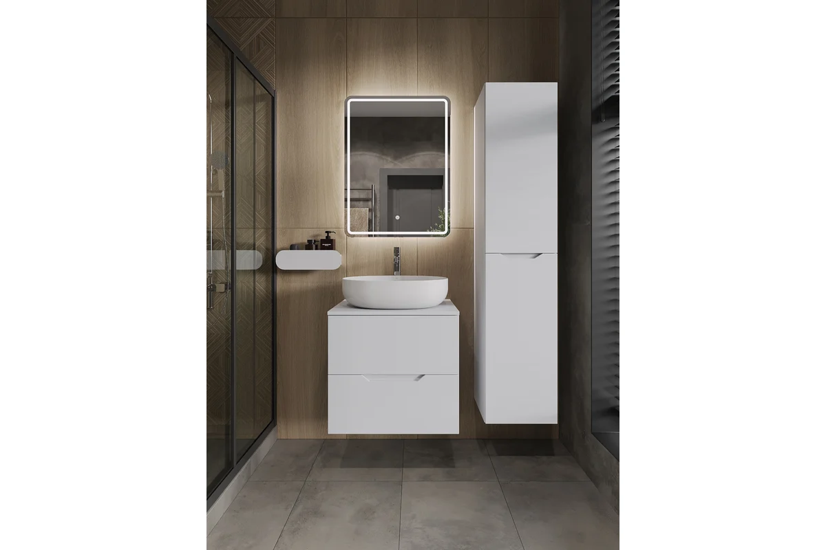 Тумба Orange Line Li-60TuwMDF+B05-520W 60 см, подвесная, белая матовая, с раковиной белой