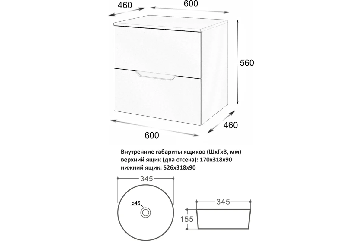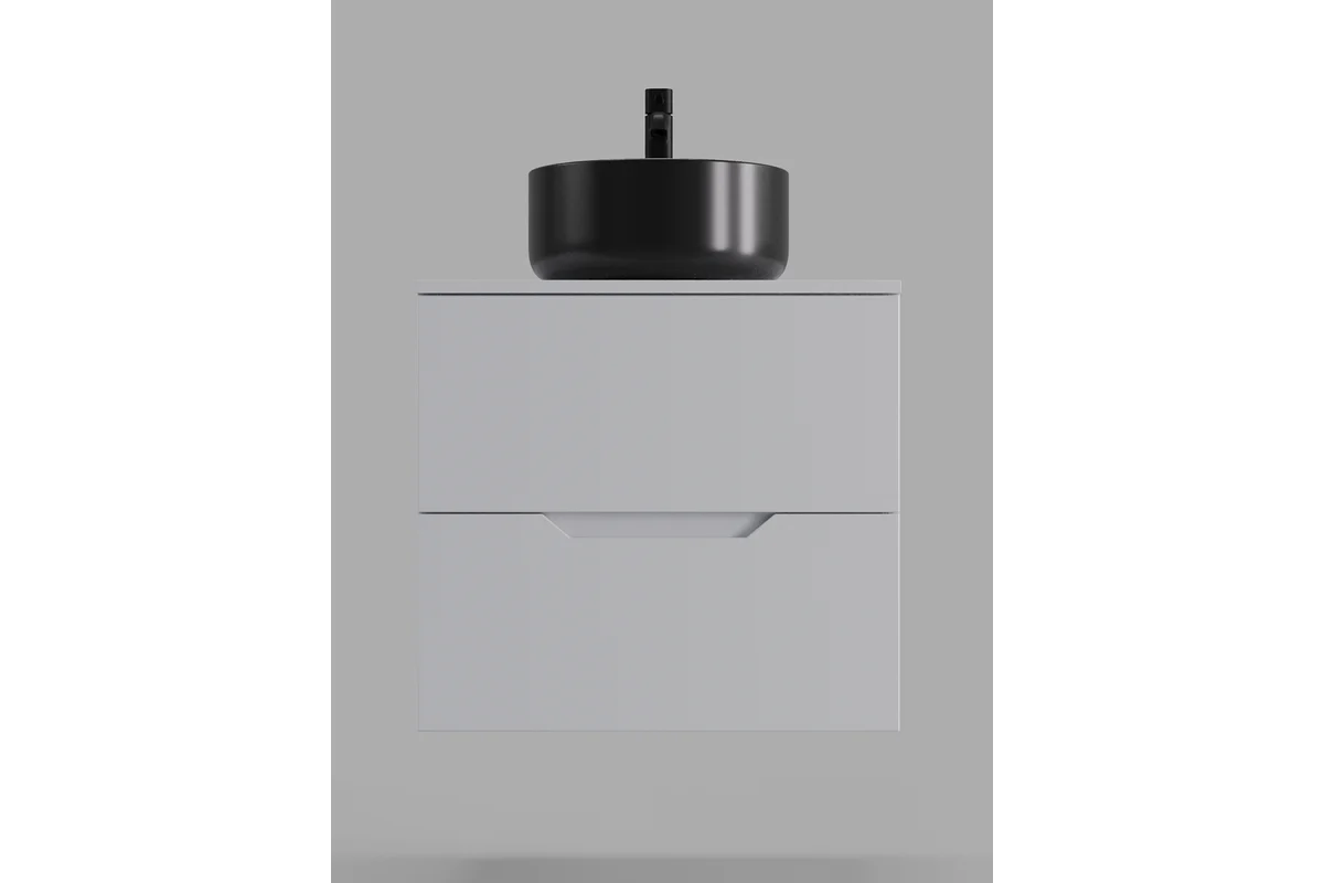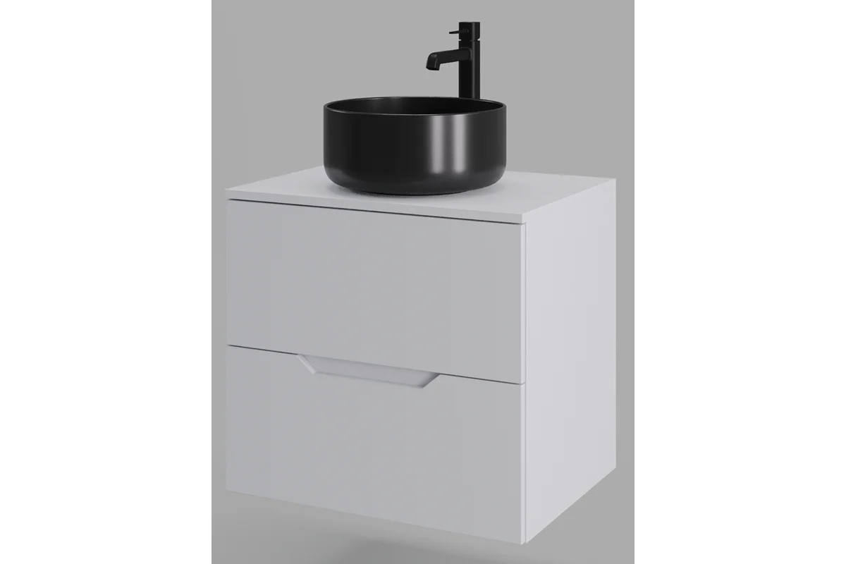 Тумба Orange Line Li-60TuwMDF+B07-345B 60 см, подвесная, белая матовая, с раковиной чёрной