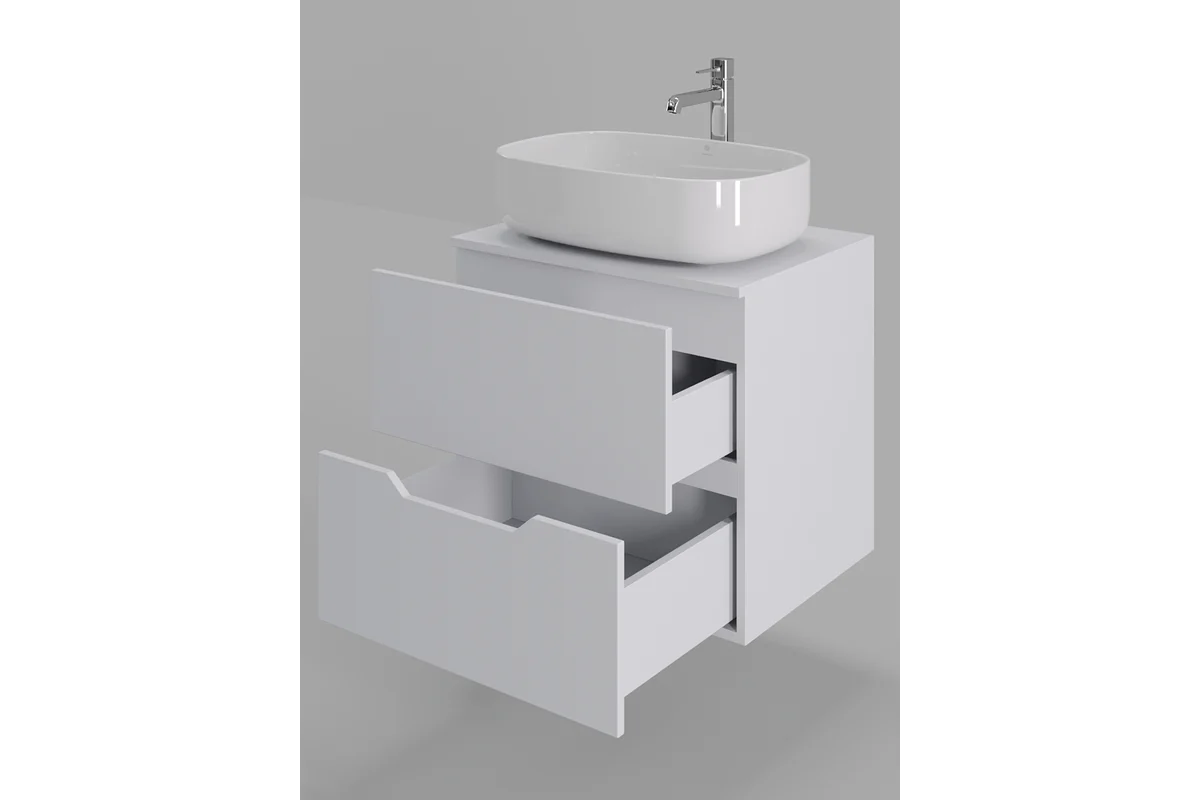 Тумба подвесная с накладной раковиной Orange Line отличается современным дизайном. Изготовлена из МДФ высокой плотности. Мебель покрыта пленкой ПВХ с технологией Soft Touch — ламинация класса премиум, с повышенными тактильными свойствами. Пленка обеспечивает дополнительную защиту мебели от влаги и перепадов температуры. На ящики установлены комплекты скрытых направляющих Hettich, обеспечивающие полное выдвижение и имеющие встроенную систему плавного и бесшумного закрывания. Исполнение - матовое. Материал раковины - фарфор. Отверстия в столешнице под раковину и смеситель монтируются самостоятельно.