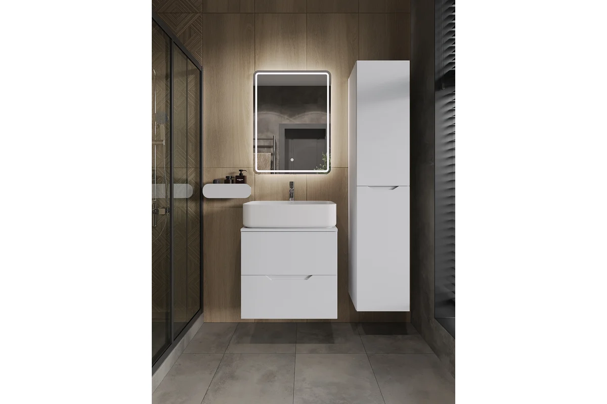 Тумба Orange Line Li-60TuwMDF+B07-600W 60 см, подвесная, белая матовая, с раковиной белой