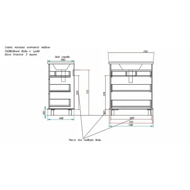 - Габариты корпуса тумбы (ШхВхГ): 748х880х446 мм.