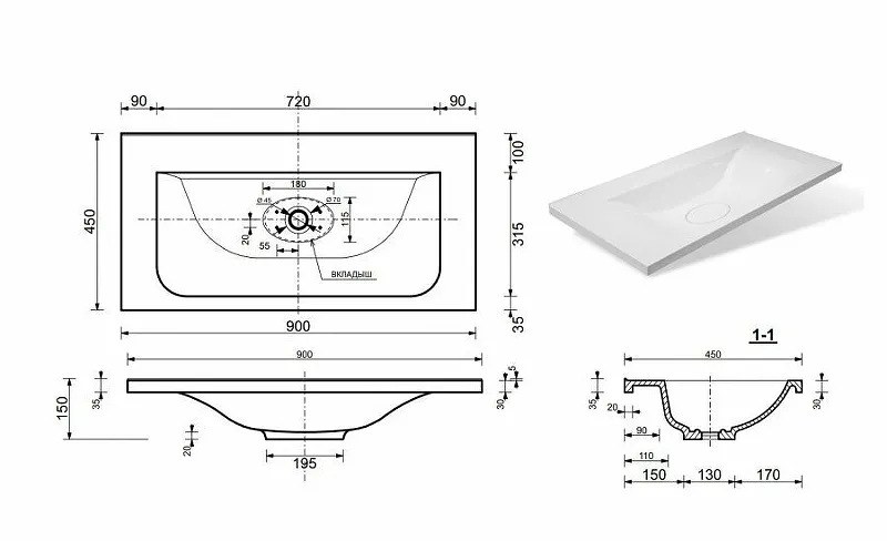 | Форма раковины: | прямоугольная |