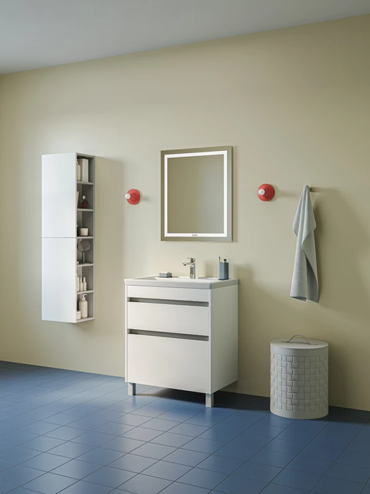 Вместительная напольная тумба для ванной Zodiac X с умывальником и двумя увеличенными выдвижными ящиками – новая версия коллекции-бестселлера Zodiac, которую мы обновили согласно актуальным требованиям дизайна и функционала. Универсальный стиль идеально впишется в любой интерьер. Увеличено место хранения: полезная высота нижнего ящика – 236 мм, верхнего – 103 мм. Материал фасада – МДФ с покрытием ПВХ-плёнкой, материал боковин – влагостойкий ЛДСП. Такое качественное исполнение обеспечит долгий срок службы мебели во влажном помещении ванной (при соблюдении рекомендаций по уходу). Обновлённый керамический умывальник увеличенных габаритов с большой и глубокой чашей. Удобен для гигиенических и хозяйственных нужд. Ящики открываются захватом за фасад и благодаря механизму плавного доведения закрываются плавно и бесшумно. Фурнитура рассчитана на 30 000 открываний, что составляет более 10 лет исправной работы. Ящики полностью выдвигаются, что делает их очень удобными в использовании. Гарантия на мебель IDDIS® – 3 года, на умывальник – 25 лет.