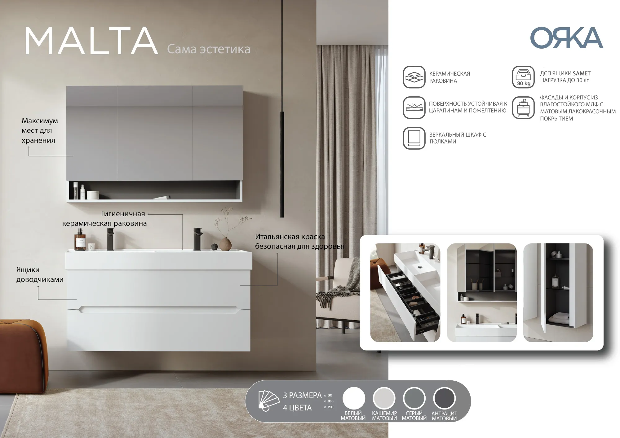 Тумба с раковиной ORKA Malta 5001471 80 см, белая матовая