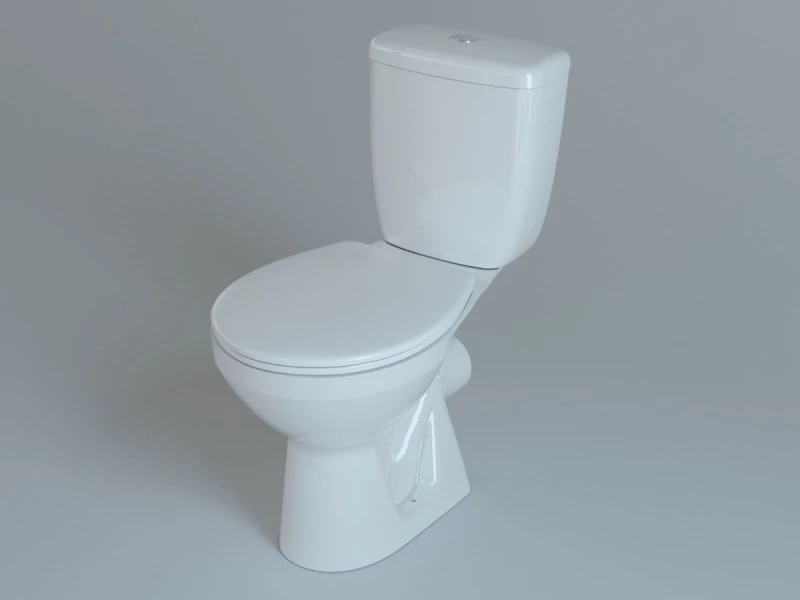 Унитаз компакт с косым выпуском, нижнем подводом воды и полипропиленовым сиденьем в комплекте