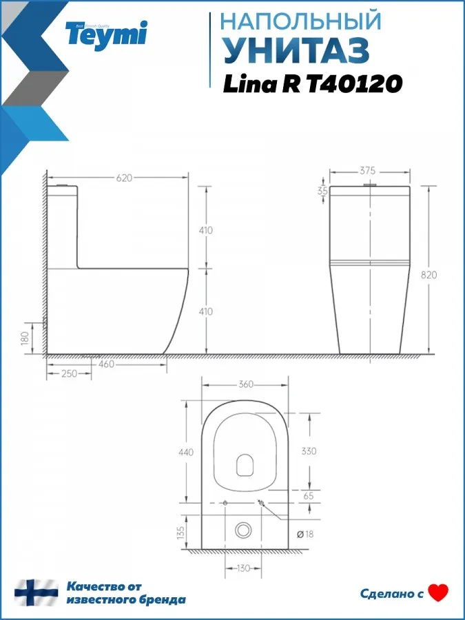 - Унитаз Teymi Lina R T40120 станет практичным и долговечным решением для дома, сочетая современные технологии, продуманный дизайн и десятилетнюю гарантию производителя.