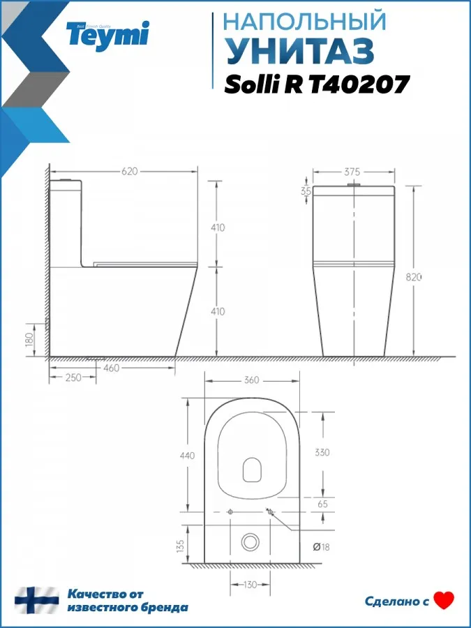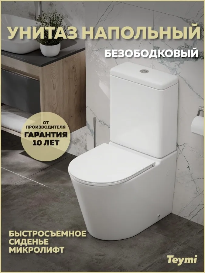 - Унитаз напольный Teymi Solli R T40207 — это сочетание современного дизайна, надежных материалов и продуманной функциональности для комфортного использования в ванной комнате.