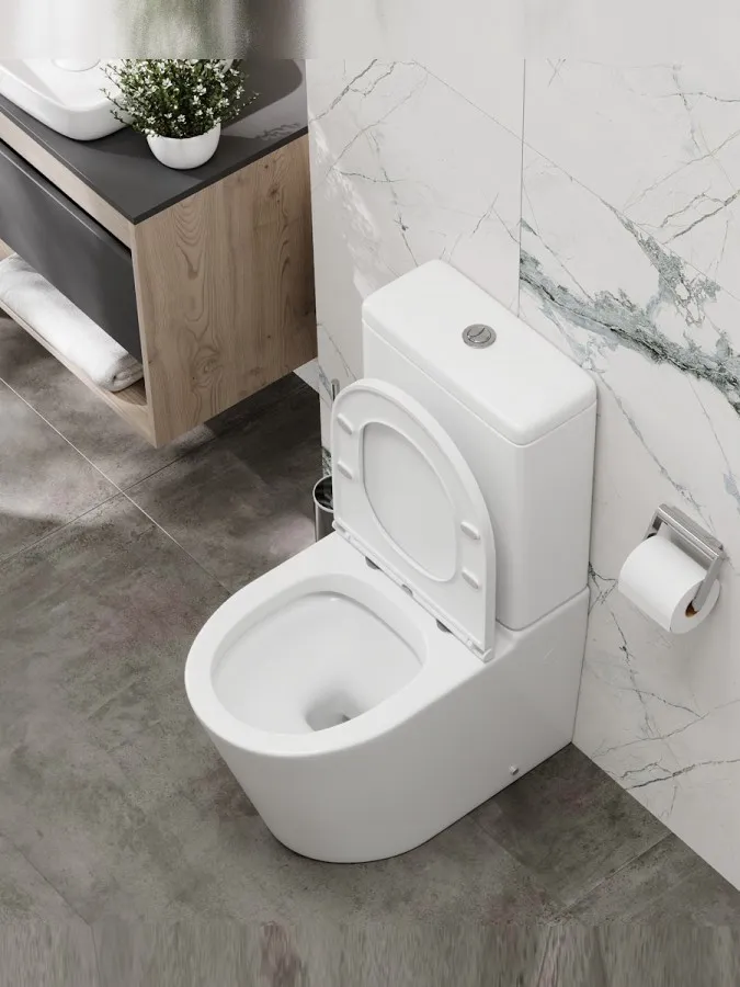 - Унитаз имеет компактные размеры 620×375×820 мм и устанавливается на пол без необходимости монтажа инсталляции. Встроенный бачок оснащён системой каскадного смыва и функцией антивсплеск. Экономичный двойной слив 3/6 л позволяет рационально расходовать воду.