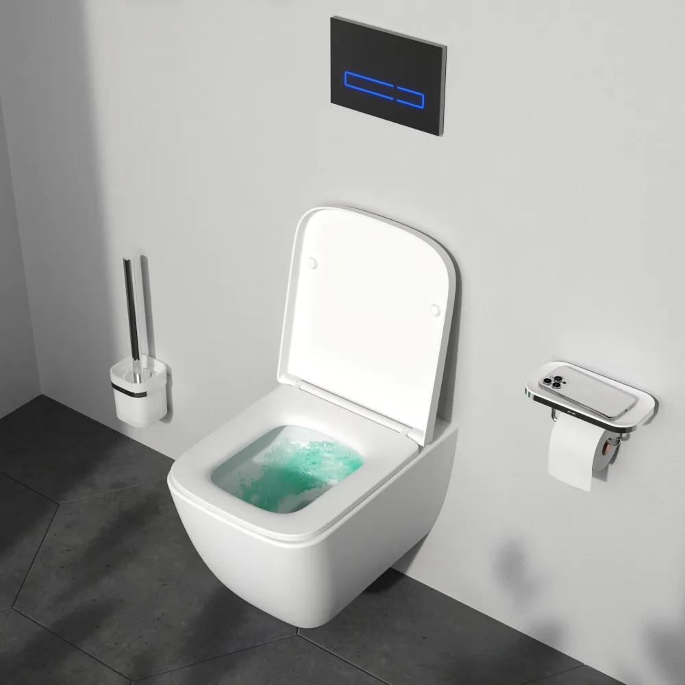 Современный дизайн и трендовая квадратная форма чаши в керамике АМ.РМ. Авторство дизайна принадлежит собственной студии AM.PM Design. AquaSpin -новая система смыва последнего поколения-более эффективное омывание чаши, гигиеничность и экономия воды до 50% - в сравнении с классическими видами омывания, выверенная геометрия гарантирует отсутствие брызг , минимум рельефа внутри чаши обеспечивает пониженный уровень шума при смыве и дополнительную лёгкость в уборке. Дизайн смыва разработан немецким агентством Brandis.