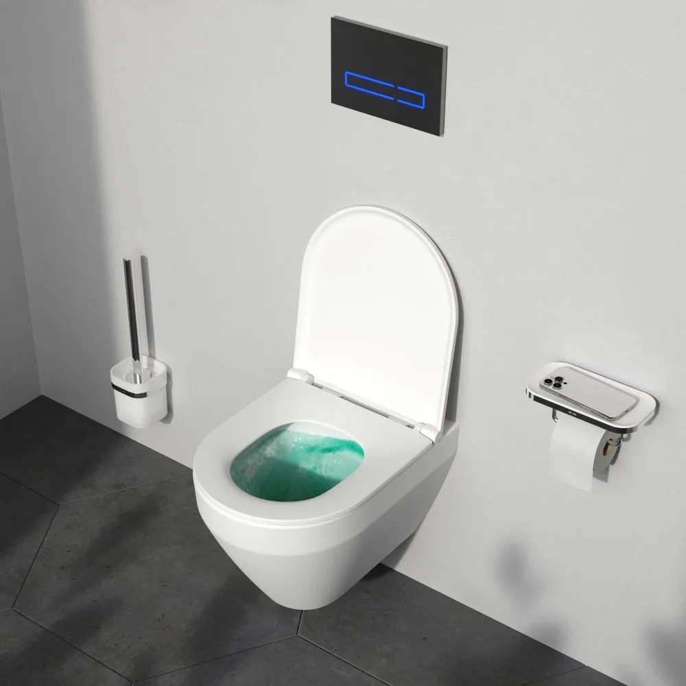 Выверенный геометрический дизайн - идеально ровные поверхности с четкими гранями, - отмечен премиями iF Design и Good Design. AquaSpin -новая система смыва последнего поколения-более эффективное омывание чаши, гигиеничность и экономия воды до 50% - в сравнении с классическими видами омывания, выверенная геометрия гарантирует отсутствие брызг , минимум рельефа внутри чаши обеспечивает пониженный уровень шума при смыве и дополнительную лёгкость в уборке. Дизайн смыва разработан немецким агентством Brandis.