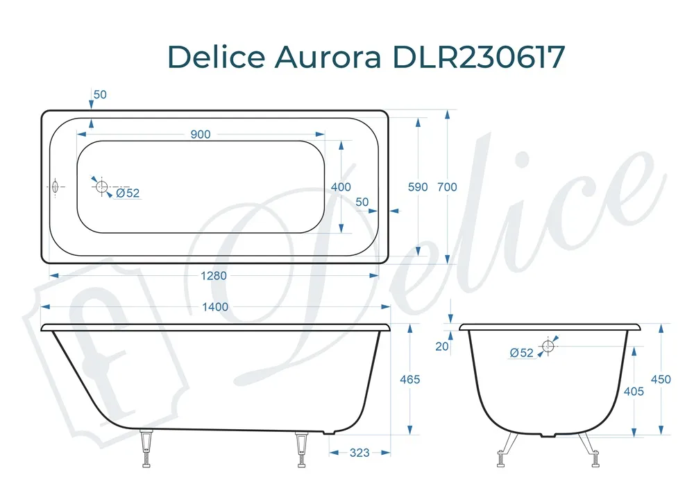 Для установки используются фирменные ножки Delice, которые имеют надежное и прочное крепление, обеспечивают высокую устойчивость ванны и регулируются по высоте. Высота на ножках варьируется от 60 до 65 см. Высоту ванны можно уменьшить или увеличить: заменить болты на более длинные или установить ванну без ножек на кирпичи, основу, подиум или другие конструкции, которые обеспечат вам необходимую высоту от пола.