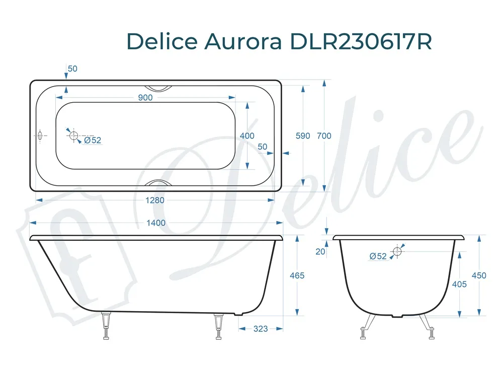 Для установки используются фирменные ножки Delice, которые имеют надежное и прочное крепление, обеспечивают высокую устойчивость ванны и регулируются по высоте. Высота на ножках варьируется от 60 до 65 см. Ножки выполнены из высокопрочного чугуна марки СЧ25, который выдерживает большие нагрузки. Для модели Aurora подходит свой комплект ножек - артикул DLR000012.