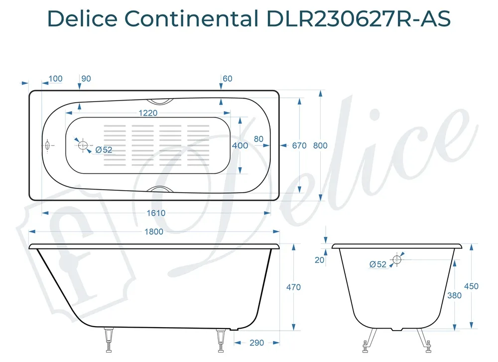 Данная модификация Delice Continental имеет противоскользящее покрытие дна, которое гарантирует безопасный и комфортный прием ванны и душа. Покрытие наносится специальным оборудованием на производстве в виде тонких полос, практически не заметно визуально и не ощущается при использовании.