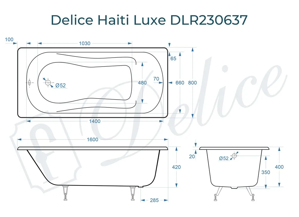 Описание чугунной ванны Delice Haiti Luxe 160х80