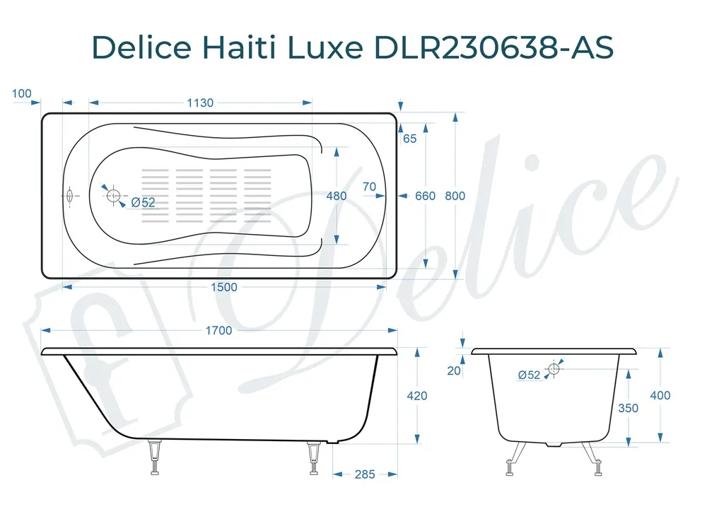 Описание чугунной ванны Delice Haiti Luxe 170х80 с антискользящим покрытием