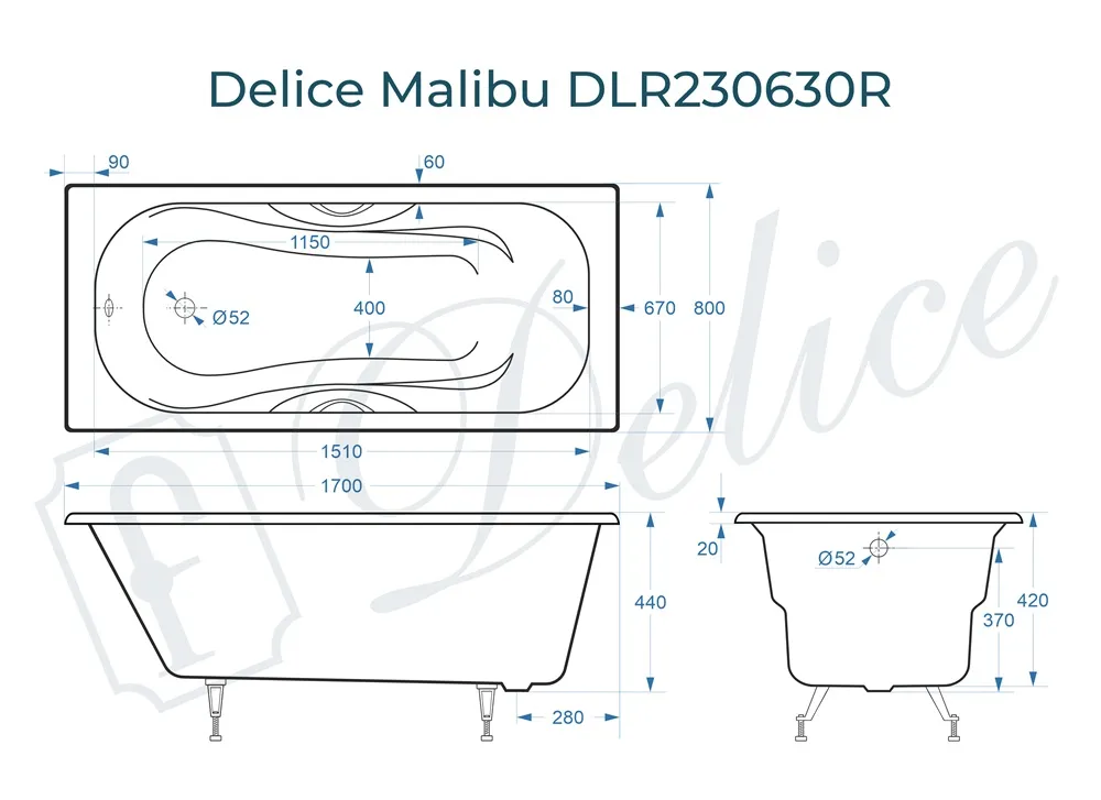 Delice Malibu 170х80 выпускается в 4-ех модификациях: