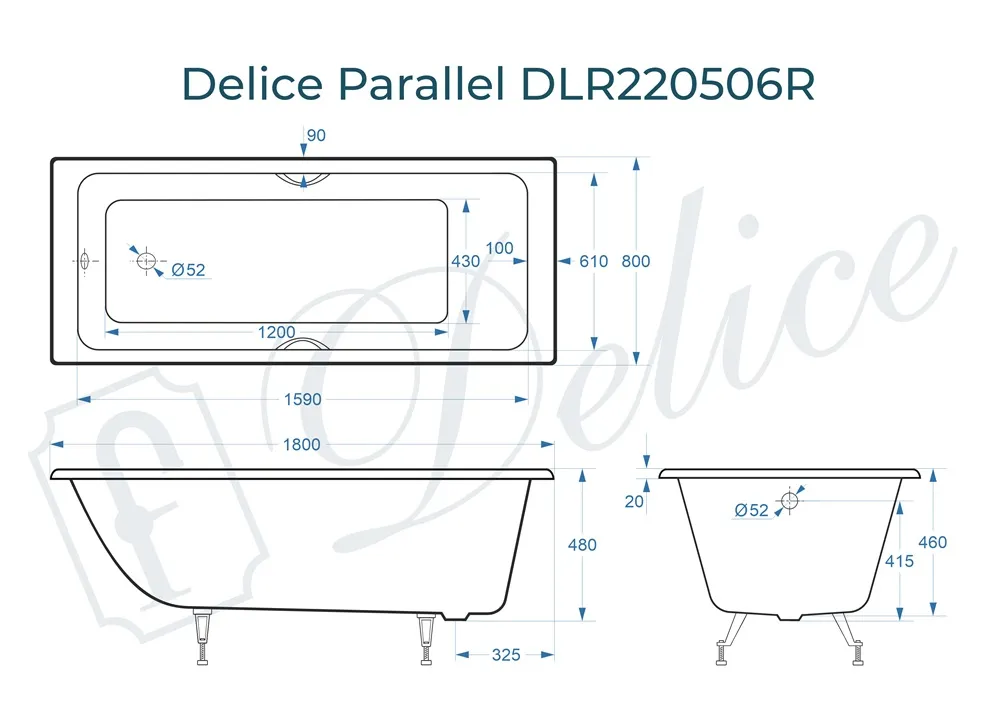 Для установки используются фирменные ножки Delice, которые имеют надежное и прочное крепление, обеспечивают высокую устойчивость ванны и регулируются по высоте. Высота на ножках варьируется от 61 до 66.5 см. Ножки выполнены из высокопрочного чугуна марки СЧ25, который выдерживает большие нагрузки. Для модели Parallel подходят ножки для серии Comfort (артикул DLR000001).