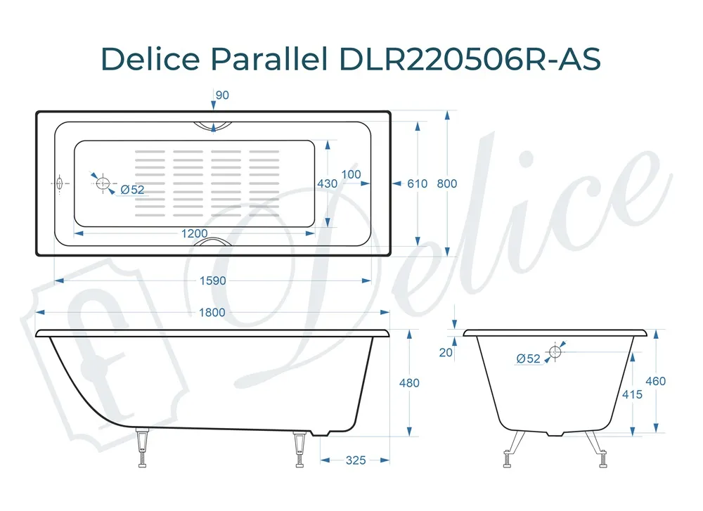Для установки используются фирменные ножки Delice, которые имеют надежное и прочное крепление, обеспечивают высокую устойчивость ванны и регулируются по высоте. Высота на ножках варьируется от 61 до 66.5 см. Ножки выполнены из высокопрочного чугуна марки СЧ25, который выдерживает большие нагрузки. Для модели Parallel подходят ножки для серии Comfort (артикул DLR000001).