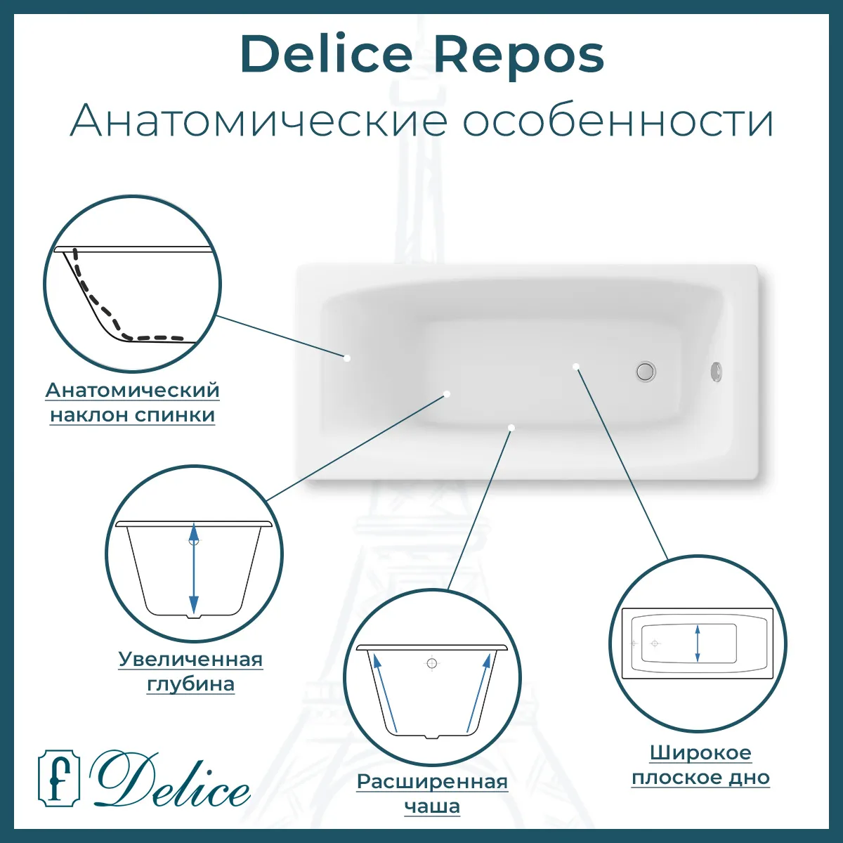 Описание чугунной ванны Delice Repos 170х70 с антискользящим покрытием