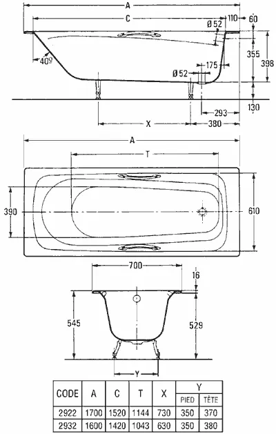 Ванна чугунная Jacob Delafon Melanie E2925 170х70