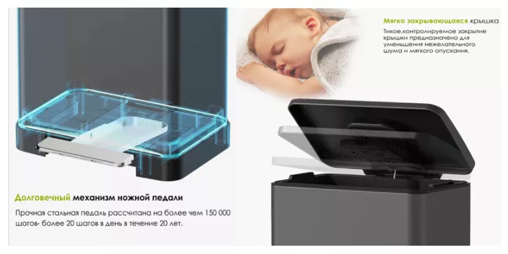 Современный и эргономичный дизайн украсит ваш интерьер и значительно облегчит процесс утилизации мусора. Брашированная сталь подойдет для современного интерьера в спокойных элегантных тонах. Вам будет комфортно им пользоваться как в ванной комнате, так и на кухне, и в жилых помещениях,офисах.