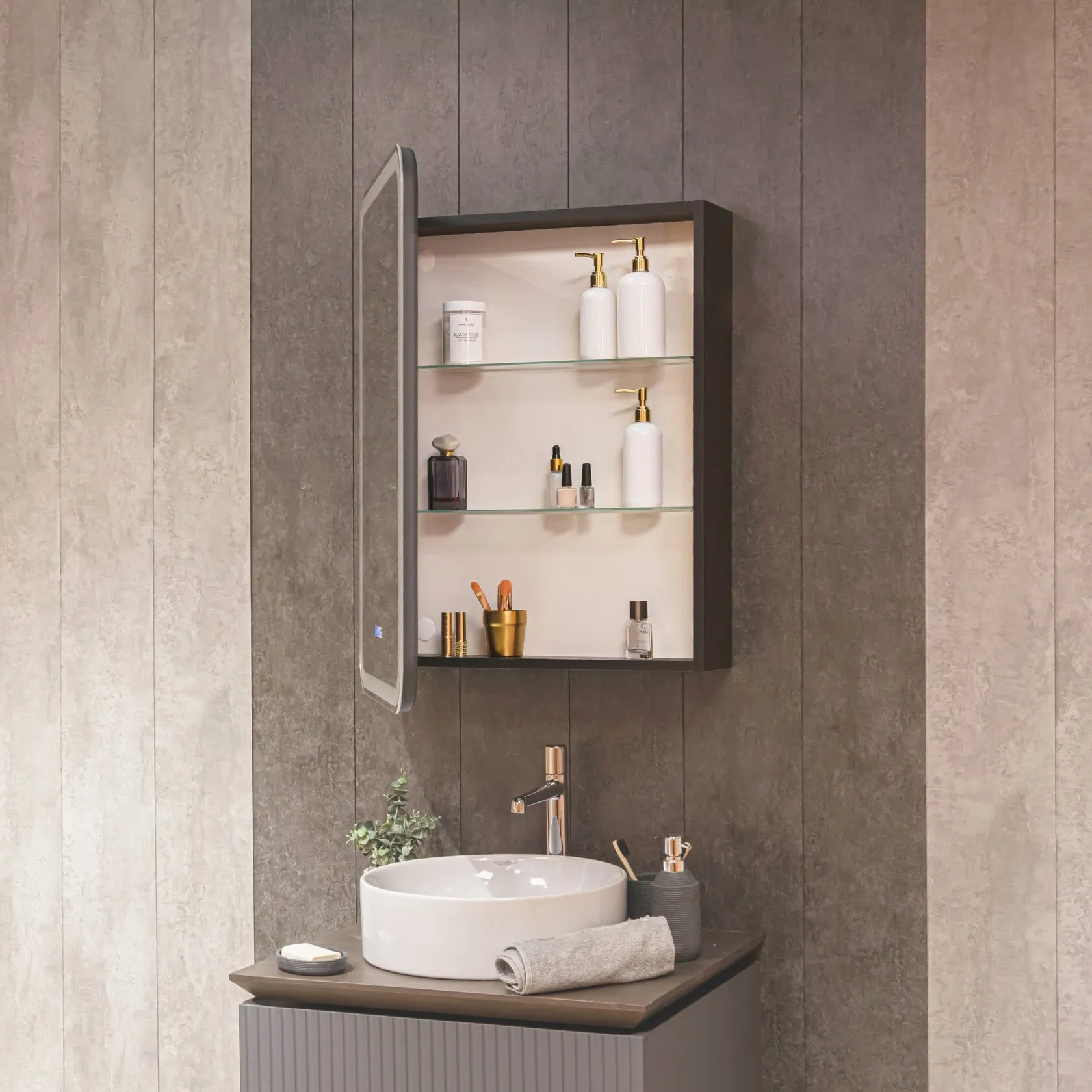 Зеркальный шкаф AQUAME Фиджи-Антрацит AQM9204 с подсветкой и подогревом ЛЕВЫЙ 600х800
