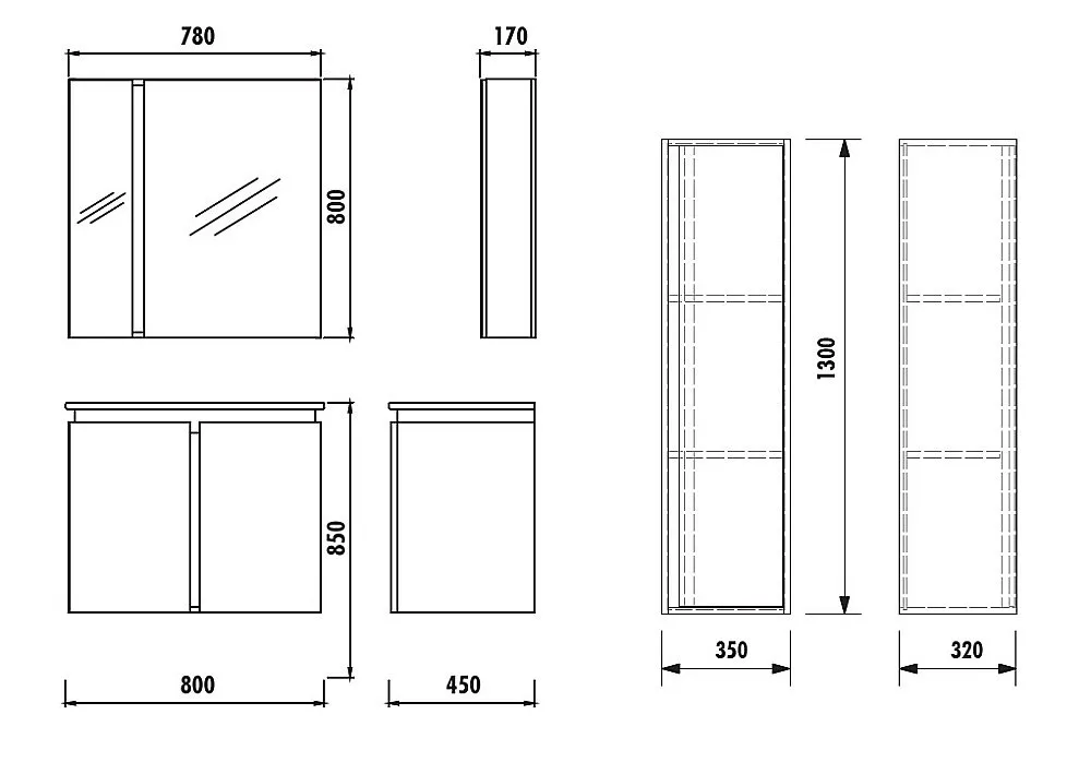 - Система хранения: 2 зеркальные распашные дверцы, полочки внутри.