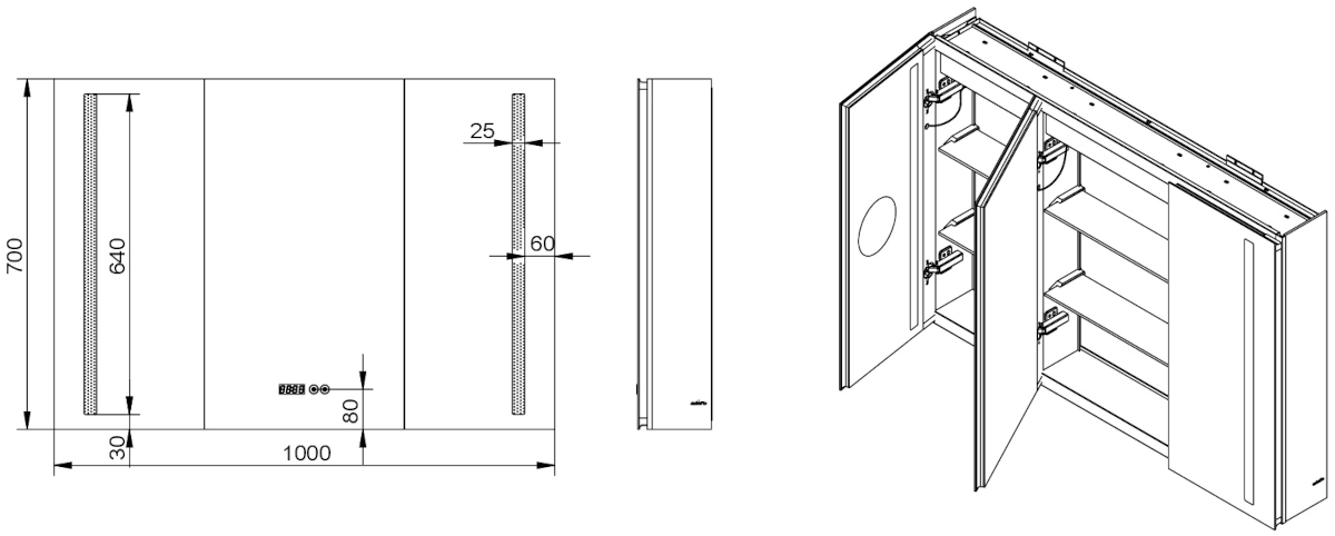 Зеркальный шкаф Esbano ES-2408, 100x70 см, с LED подсветкой