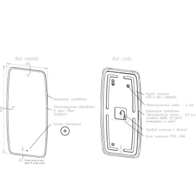 • Оснащение: зеркало, крепеж, коробка, инструкция.