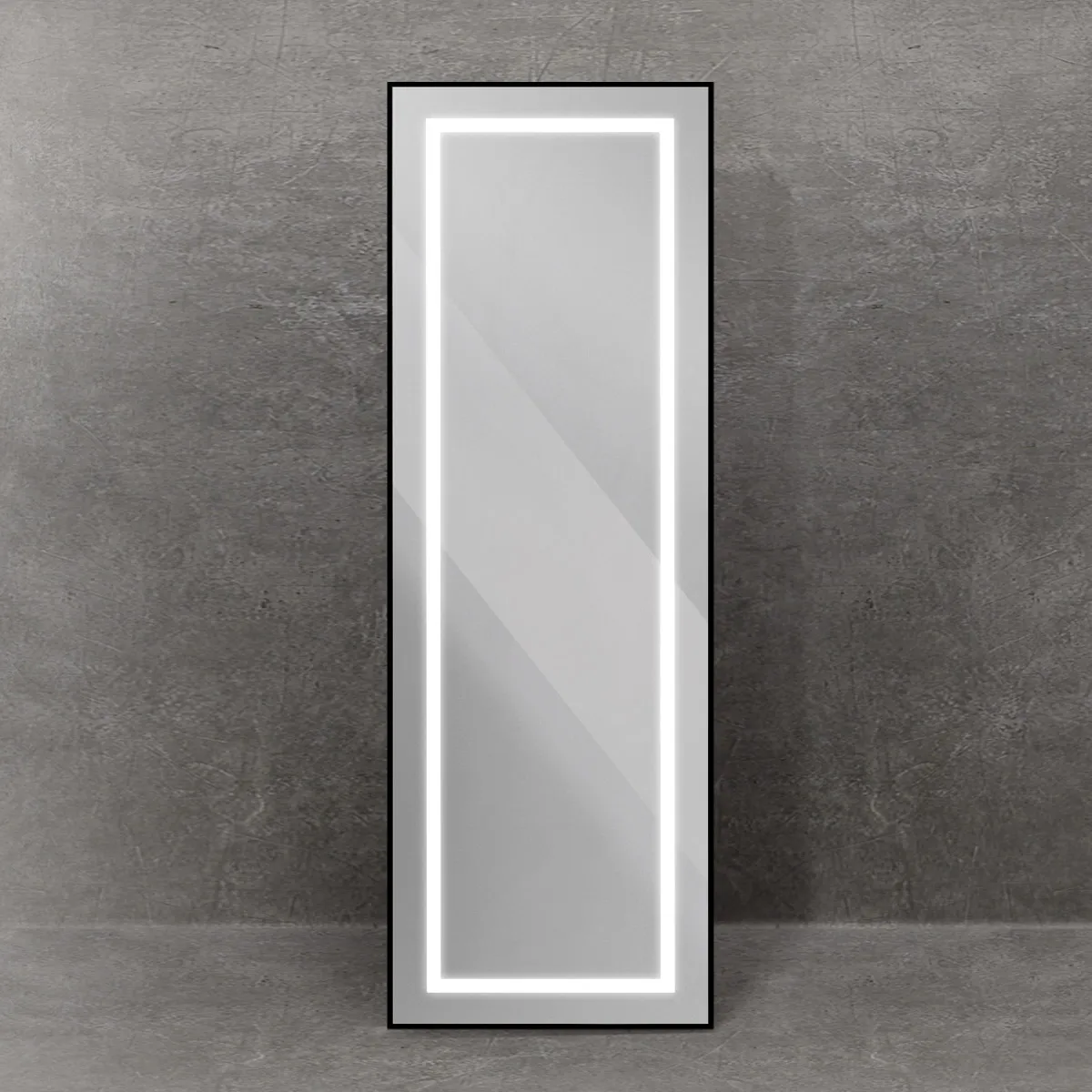 Интерьерное зеркало в алюминиевой раме со встроенным светильником и сенсорным выключателем по периметру рамы, напольное