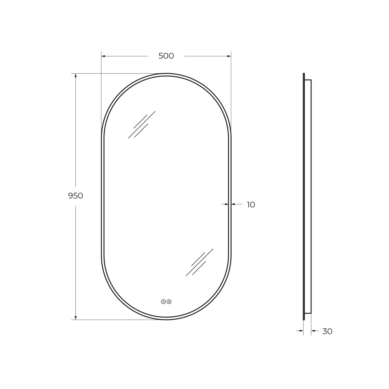 - Оснащение: подсветка, сенсорный выключатель