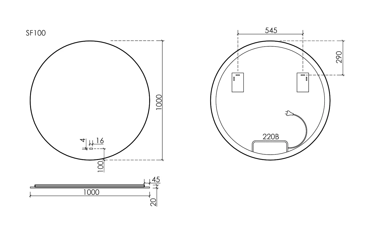 - Зеркало для ванной комнаты с подсветкой Ø1000 мм.