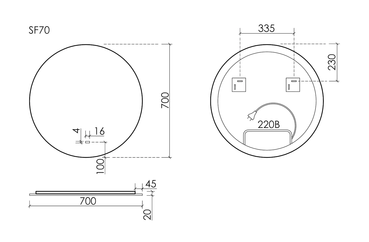- Зеркало для ванной комнаты с подсветкой Ø700 мм.