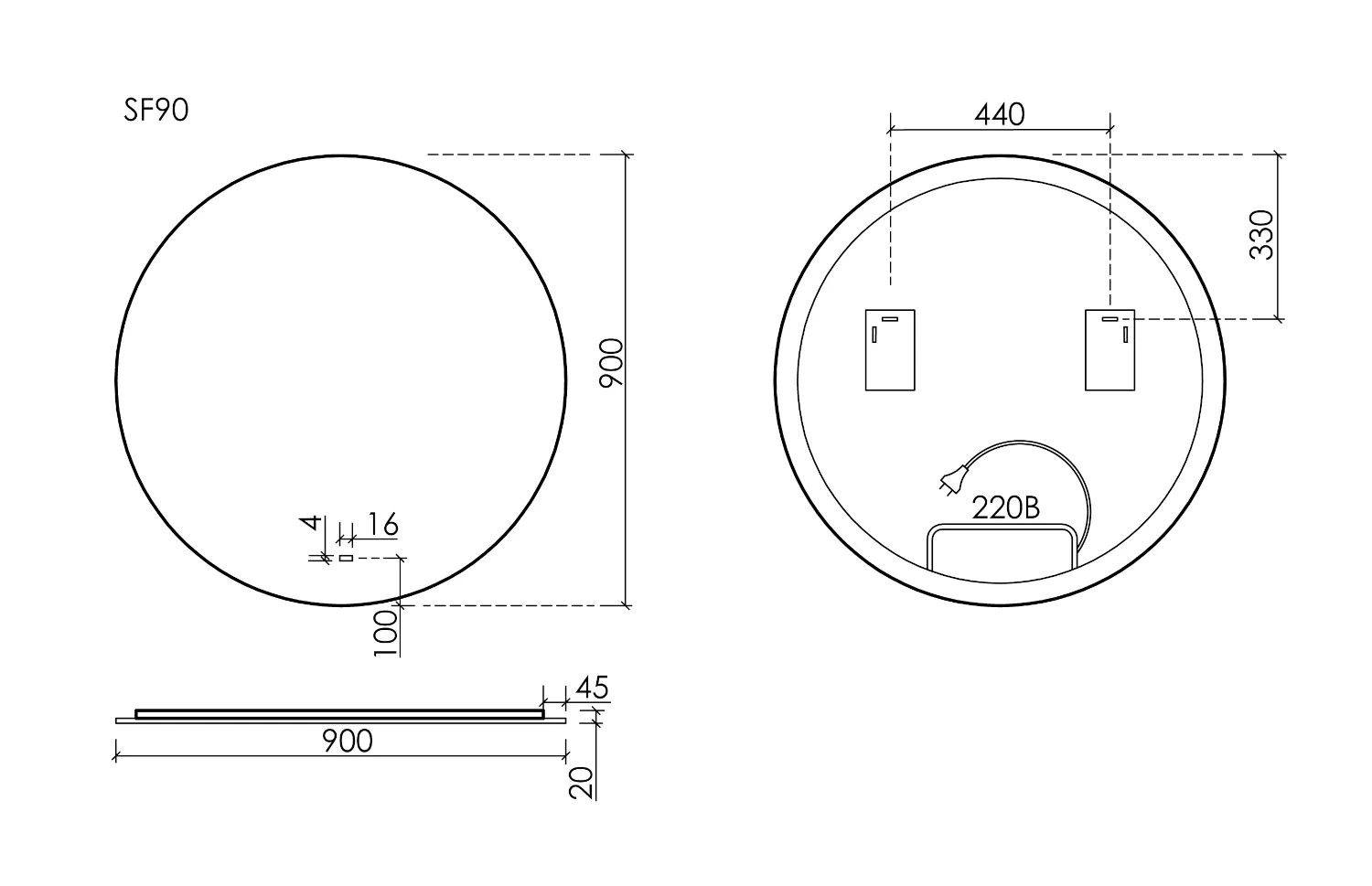 - Зеркало для ванной комнаты с подсветкой Ø900 мм.